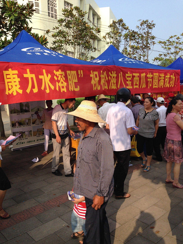 2014年7月8日,武漢禾力康農業技術有限公司應松滋市八寶鎮政府及松滋市八寶鎮滋寶西瓜專業合作社的邀請,在松滋八寶中學參加參展松滋西瓜節盛會。大會期間武漢禾力康公司旗下康力水溶肥系列產品得到了廣大農戶的好評!http://www.songzinews.cn/video/video-1260.html